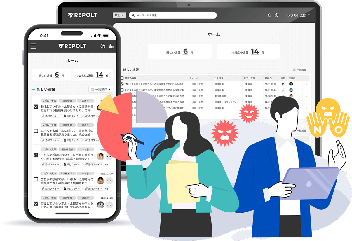 レポルト内にすべての通報内容を集約することができます。