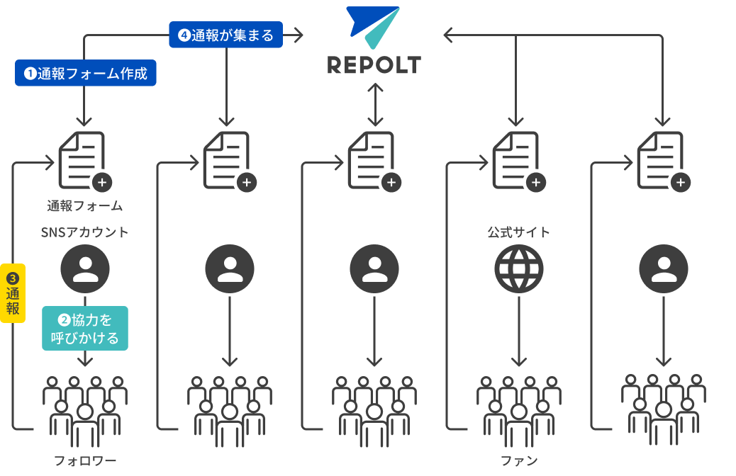すべての通報情報がレポルトに